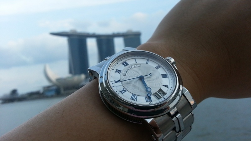 That is a gorgeous watch Robin. The Marine does not appear to be popular amongst this crowd. Actually Breguet does not seem so popular for some odd reason. Your Marine would look great on an alligator strap, but I understand Singapore weather (I used to work in the building on the right of the Fullerton in your pic). I have been so tempted to get the Marine Royale, with the alarm. Twice it has been on shopping list top 5 but in the end I went for other watches. One day I will get one, and a Hora