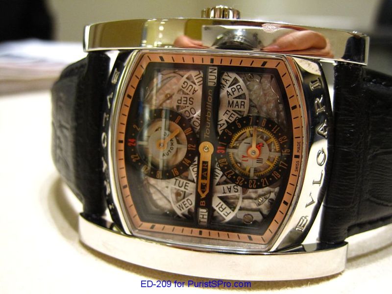 ED209 offers an exclusive look at Bulgari's 2010 complicated watch collection, showcased at the Crystals Mall boutique in Las Vegas. This post highlights the rare opportunity to handle a comprehensive range of Bulgari's high-complication timepieces, from tourbillons to grand sonneries.