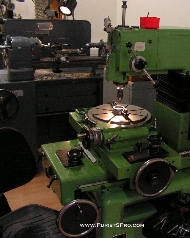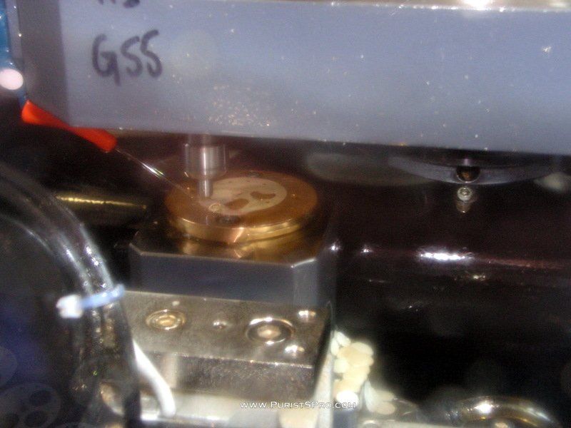 On this machine run under CN control the chrono counter dials are decorated using a diamond-tipped tool.
