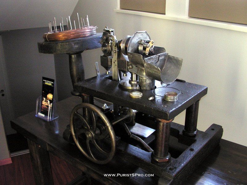 In the entry hall we are already confronted with some history. A machine to make dial feet from the year 1880.