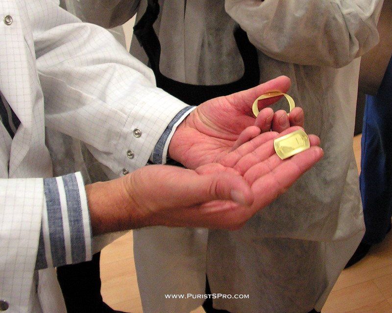 Although this area is not technically a clean room similar precautions are used to prevent the ingress of dust particles that could deface a dial. The shops are under a slight positive pressure with filtered air. Antistatic coats and footware are required.