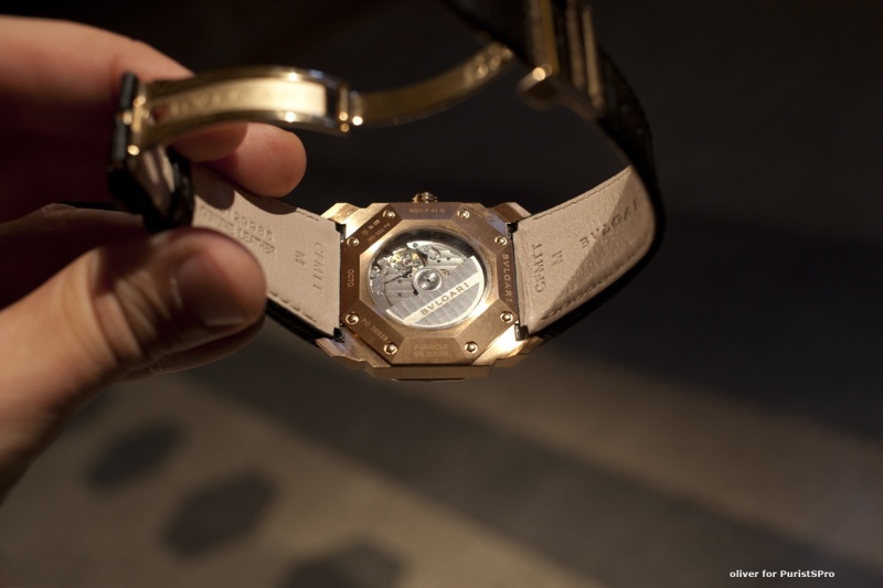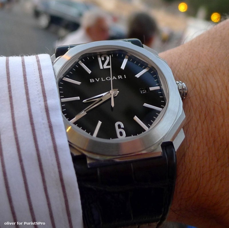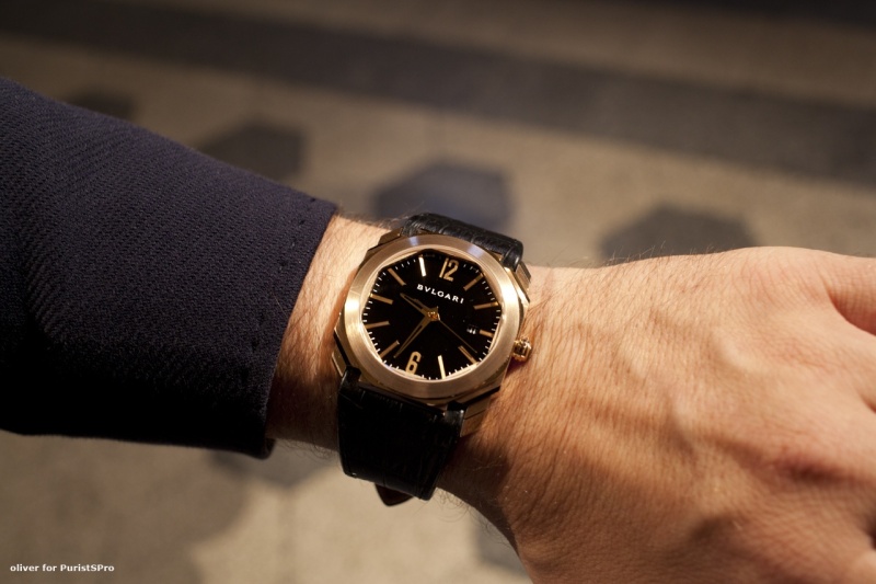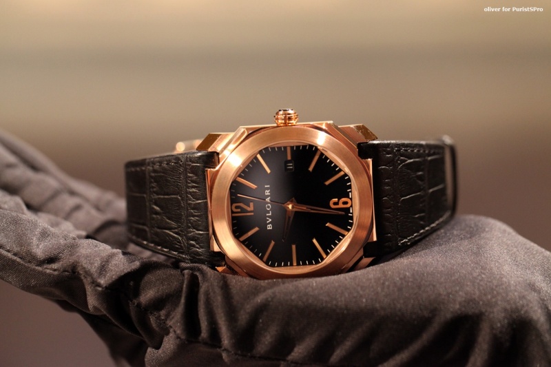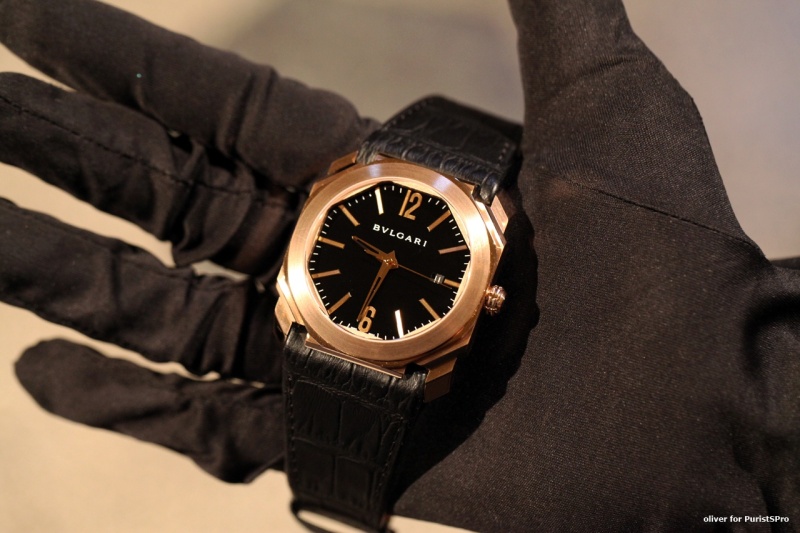 If I hadn’t already seen the watch the previous evening, I would have been slightly surprised at their newest addition to the Octo line which consists of a black lacquer dial with simple hour, minute, seconds and date functions.