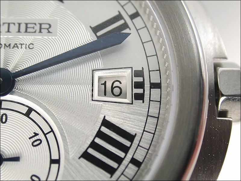 The major changes with the Calibre 38 compared with the 42 is with the dial. The new design tones down some of the bolder strokes that are present in the 42. The Roman numbers are uniform in size (no outsize XII as in the 42), and they continue all the way around the dial, not switching “California-style” to index markers below the 9-3 axis. Also, there is no luminous material on the dial or hands, rather, they are classic Cartier blued steel.