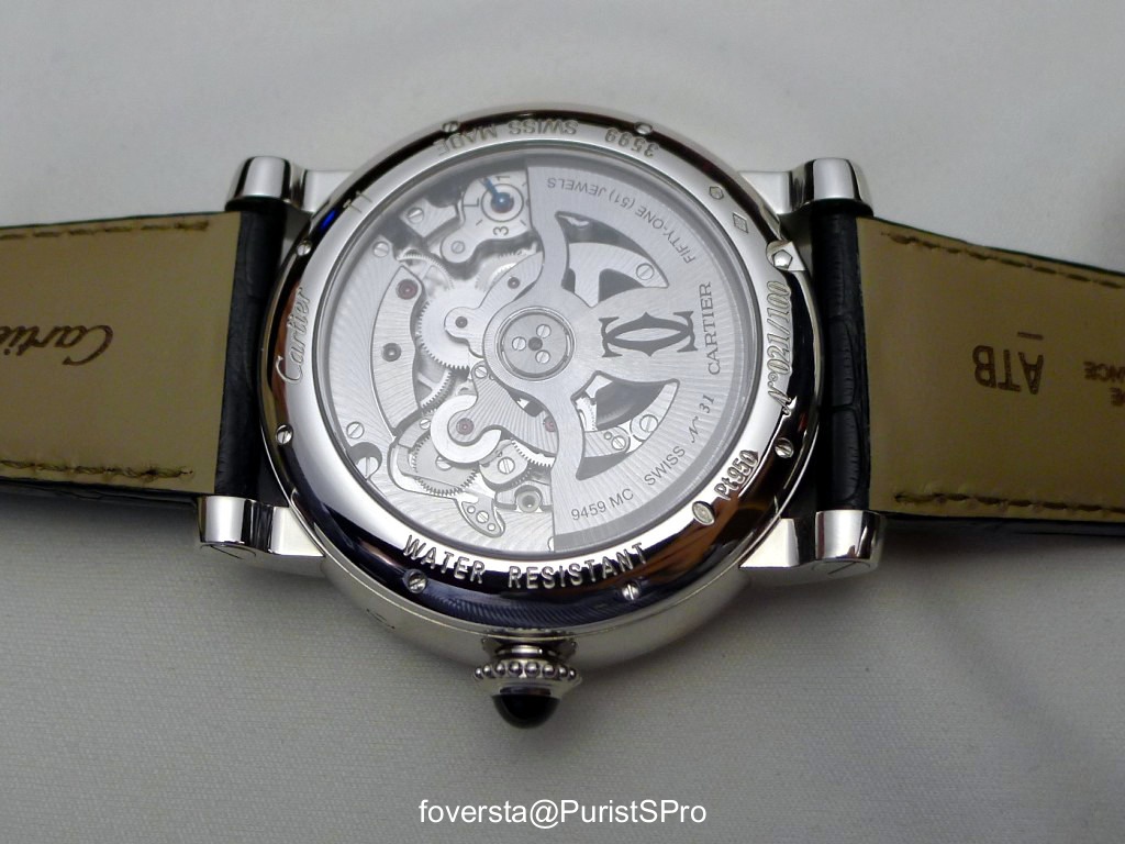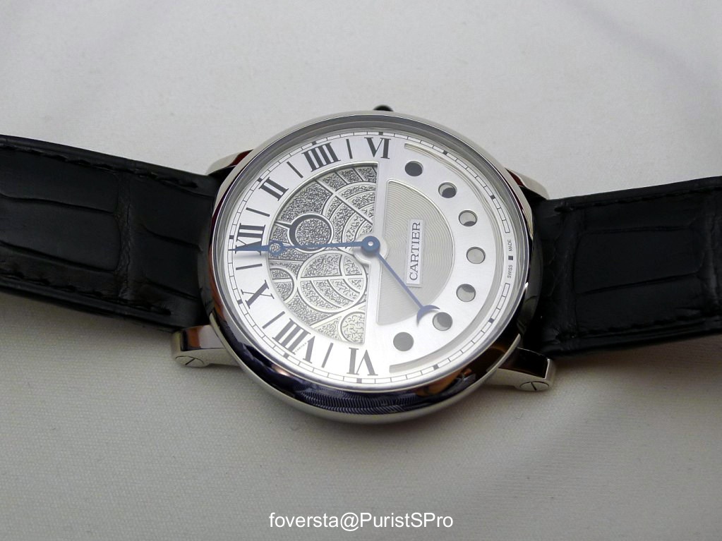 I had a lot of pleasure to put this Rotonde on the wrist: its originality, the way the retrograde moonphase display decorates the dial and the beauty of the day&night disk make this watch very appealing. Even if it doesn't reach the same level of enthusiasm than the Tank Louis Cartier skeleton sapphire, I was highly seduced by its beauty and its alternative time display.