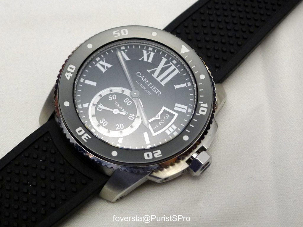 I remember very well when the Calibre was presented: at that time, I considered it as a very versatile watch. Maybe not an all-around one but it could be used in more casual conditions thanks to its quite powerful design (case shape, crown protector, large date window, large XII on top of the dial etc...). The evolution of this base made by Cartier is for me successful because the Calibre de Cartier Diver watch contains everything a diver watch requires without losing the Cartier touch. Following this road map was not easy but despite some strange details for a diver watch (roman numerals, the cabochon, the small second hand), I consider that Cartier achieved its objective.