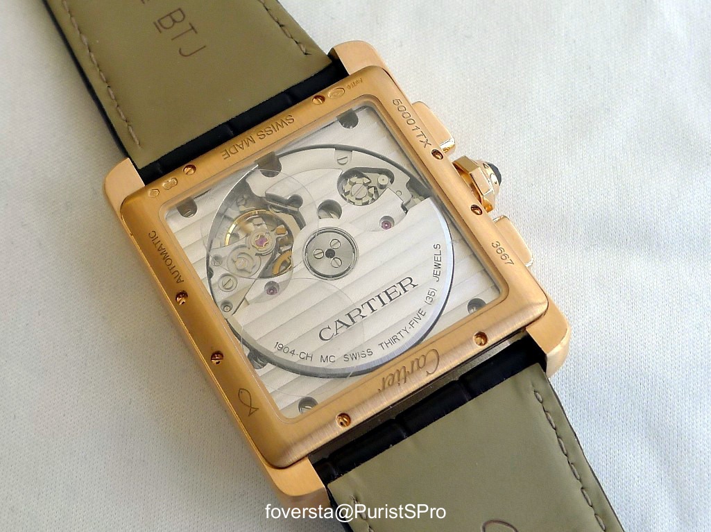 I had the chance to handle this watch today thanks to the Cartier France team. I will come back to it with a detailed review but I can already tell you that I was seduced by its charm. You know, it was not so obvious because this watch falls into the category of the "unsurprising" watches or at least, of the very logical ones. Why? Simply because after the presentation of the 3 hands Tank MC, I knew that it would house later the 1904-CH MC movement.