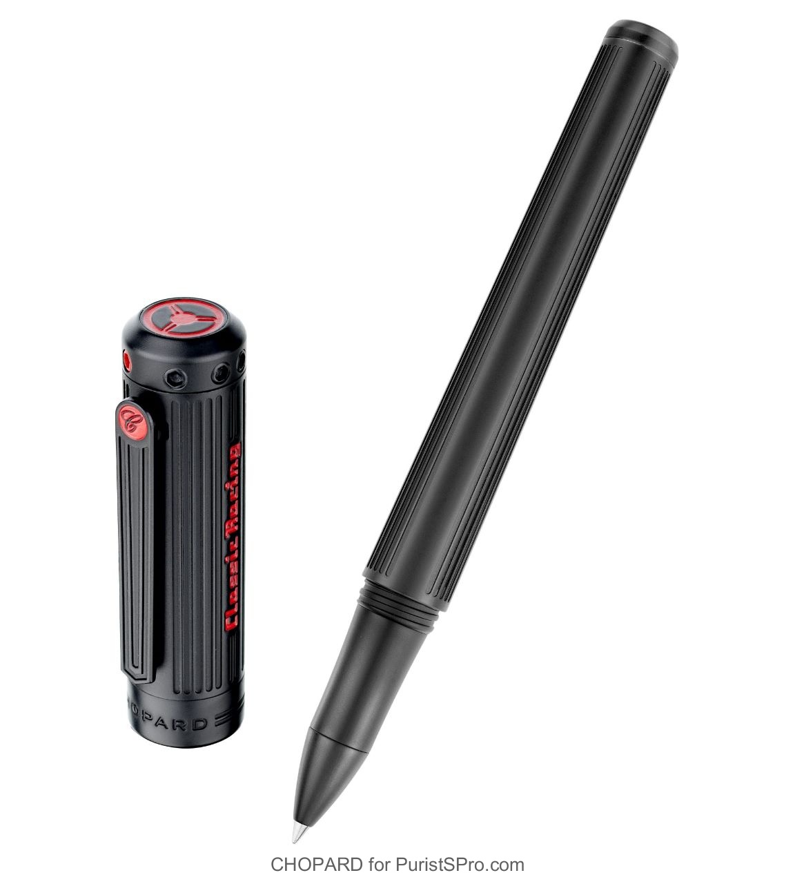 (2) Superfast roller pen in matt black lacquer with red steering wheel on the cap