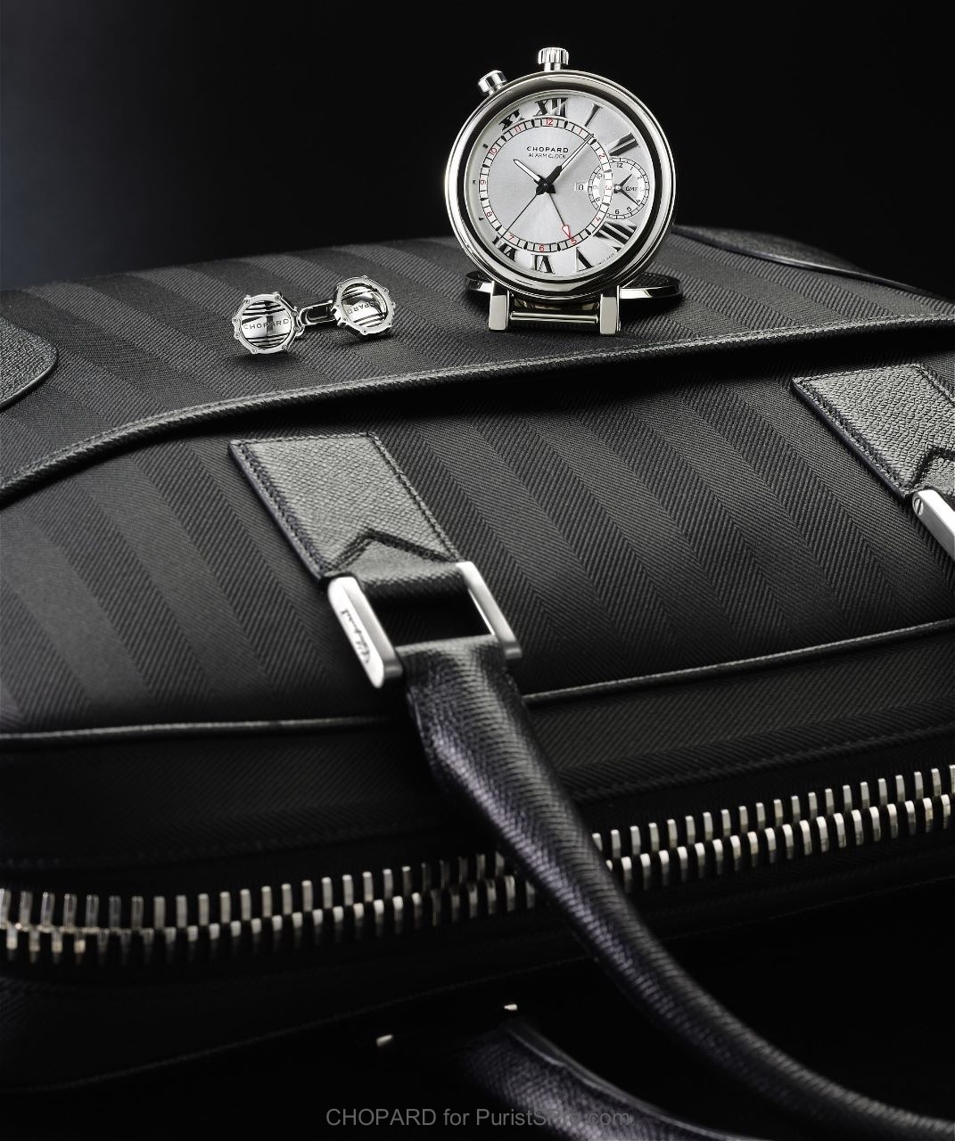 Other Chopard manly gift ideas may be this ensemble of New York Bag, GMT Travel Clock and Superfast Cufflinks.
