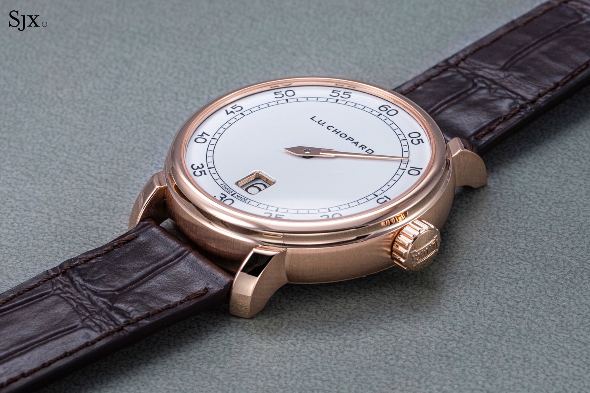 This timepiece features a 40mm platinum case, housing the L.U.C 96.01-L manual-winding movement. The movement provides a substantial power reserve of 65 hours, ensuring reliable performance over an extended period. A sapphire crystal protects the white dial, offering clear legibility and scratch resistance, while the smooth bezel maintains the watch's elegant profile. The watch is water-resistant to 30 meters, suitable for everyday wear.