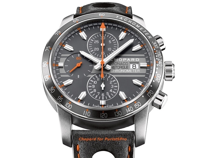 Matt grey, vivid colours, racing stripes: the new Grand Prix de Monaco Historique 2012 watch is a tribute to 1970s racing cars. Historical “speed machines” face off very two years in the Grand Prix de Monaco Historique, for which Chopard serves as official timekeeper.A passion for fine mechanics, extreme precision and rigorous standards have united the House of Chopard and the Grand Prix de Monaco Historique since 2002. This partnership has given rise to a prestigious eponymous collection dedicated to high-speed enthusiasts. The new Chopard Grand Prix de Monaco Historique 2012 pays tribute to 1970s models. Sophisticated, ultra-light, available in titanium or titanium and rose gold versions, this chronograph features the aesthetic appeal and distinctive colours of historical racing cars.