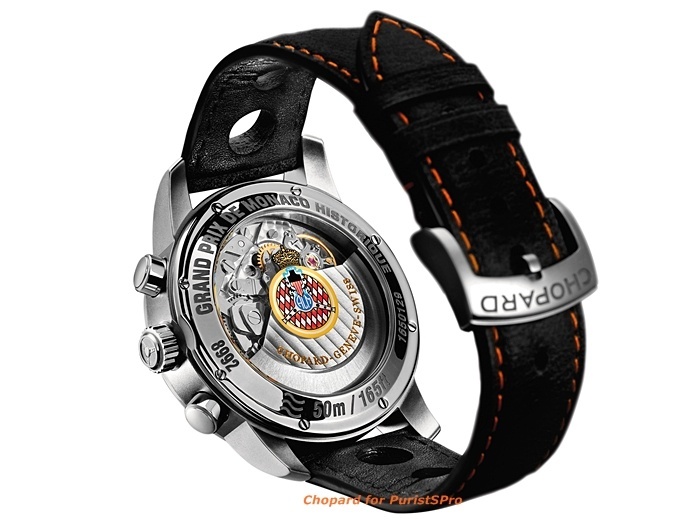 · Exhibition back, engraved with the GPMH initials and the Automobile Club de Monaco insignia