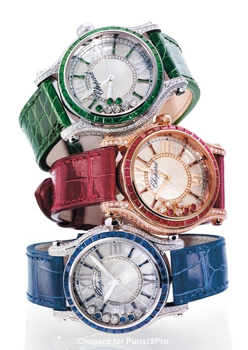 Rubies, sapphires and emeralds take over the Happy Sport Medium Automatic. A spectacular chromatic palette, led by a dance of twirling precious stones, illuminates ChopardÂťs iconic watch. ÂťRuby redÂť, Âťsapphire blueÂť, Âťemerald greenÂť: precious stones come in such enchanting and particular hues that t