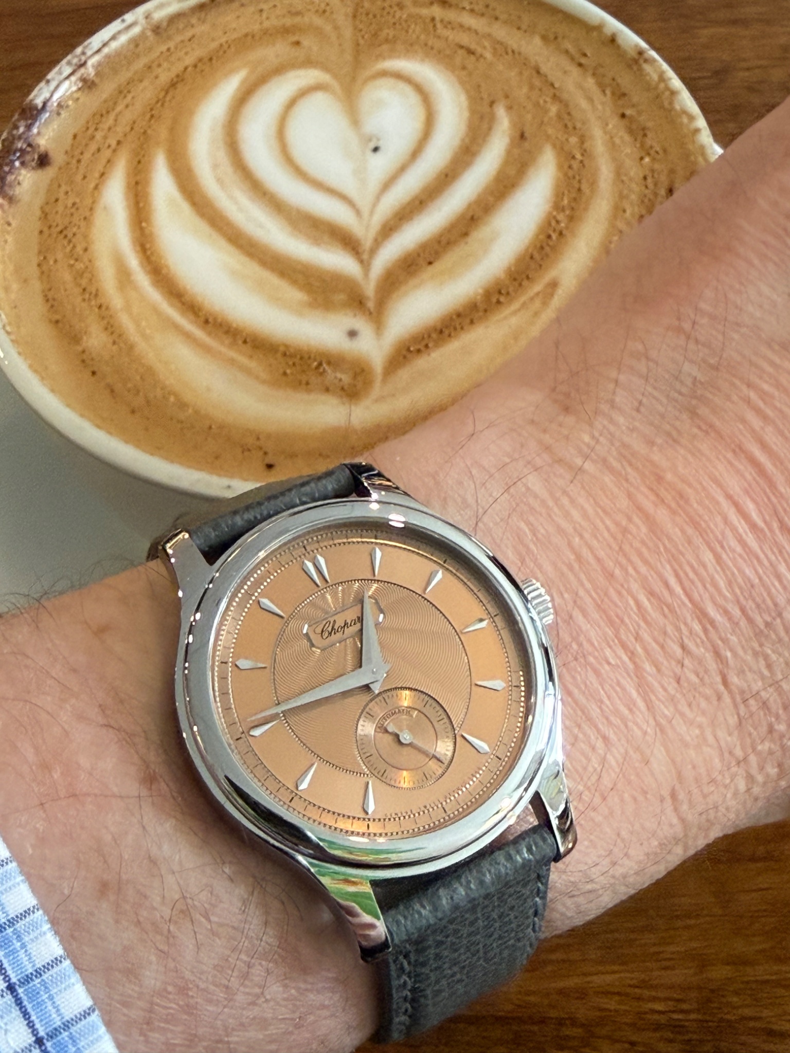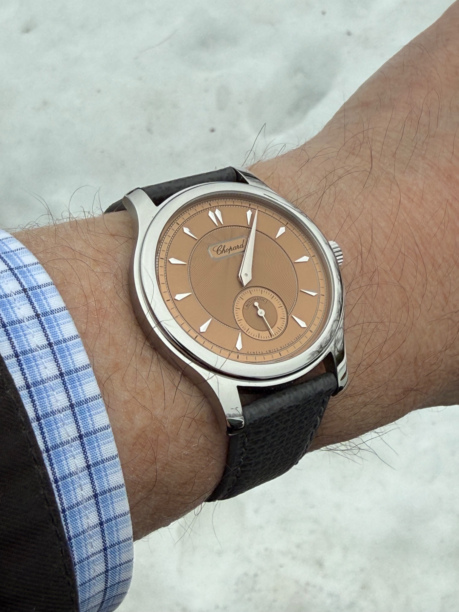 That dial colour is just beautiful and I am really fond of the dart hour markers and hands Chopard uses on these watches. Marc