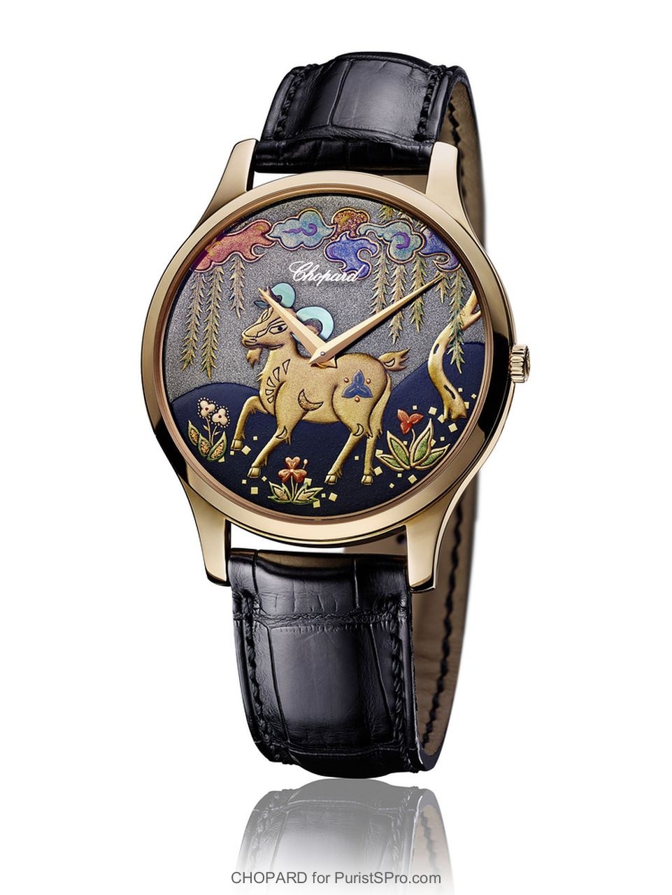 Dial crafted according to the Urushi technique with a Goat décor