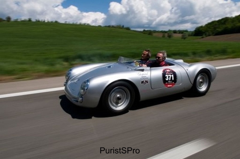 Passionate about motorsports and a collector of vintage racing cars, Karl-Friedrich Scheufele, Co-President of Chopard, also has a real passion for Porsche and its legend. On several occasions and with Jacky Ickx at his side, he has taken part in the famous Mille Miglia race at the wheel of a Porsche 550 Spyder.