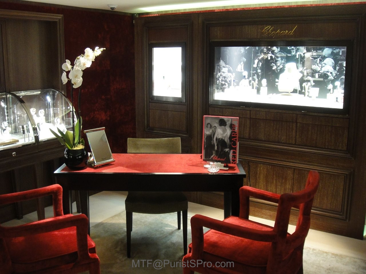 Hidden away in London, away from the beaten track, is a secret Chopard boutique. Everyone knows of the flagship London boutique in New Bond Street. Some keen enthusiasts may be aware of a smaller boutique in Harrods of Knightsbridge but few are cognisant of the petite but perfectly formed 'Red Carpet' boutique in Mayfair.