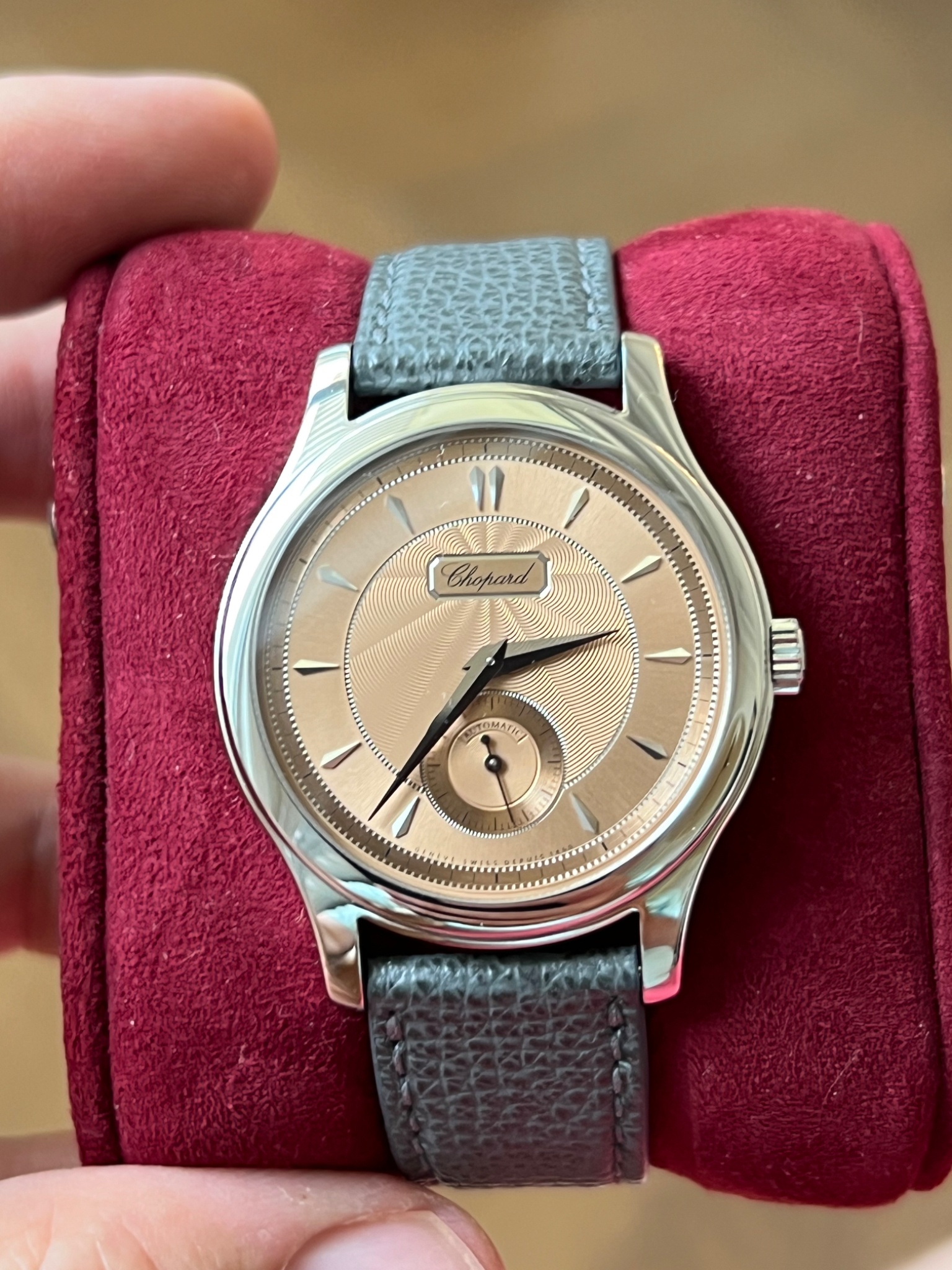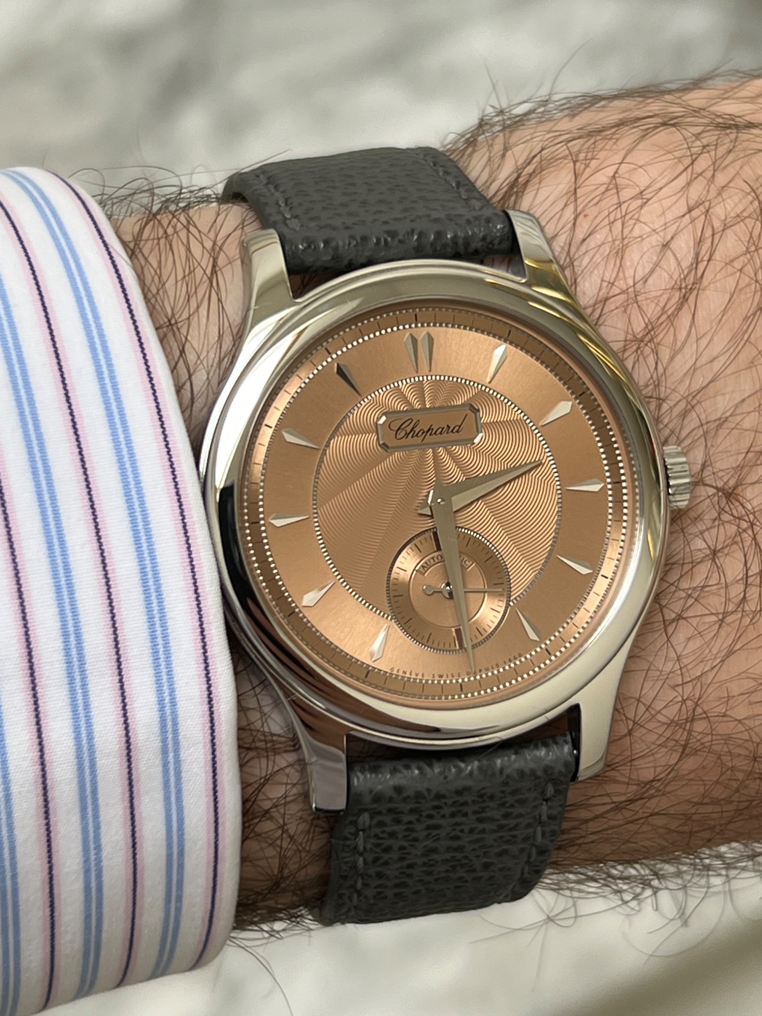 In a captivating display of horological appreciation, hora12reborn shares an exquisite series of photographs featuring the Chopard L.U.C 1860 with a salmon dial. This post serves as a visual testament to the enduring appeal of this specific reference and its dial variant, inviting collectors to delve into the nuances that make it a standout piece in the luxury watch landscape. hora12reborn's contribution highlights the watch's aesthetic brilliance, sparking a discussion on its design and craftsmanship.