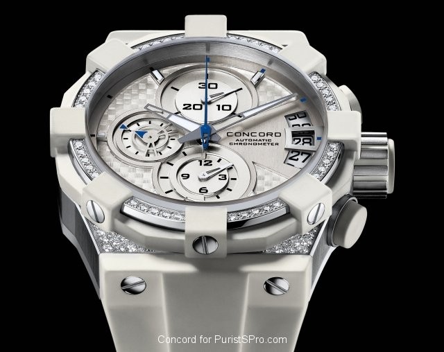"Following the C1 Chronograph launch, Concord is putting out a new variation in monochrome white. This watch has a new, powerful temperament, an assured presence and is ready for anything, like the active, decisive men and women able to control things and take charge of time in much the same way as mechanical watchmaking.