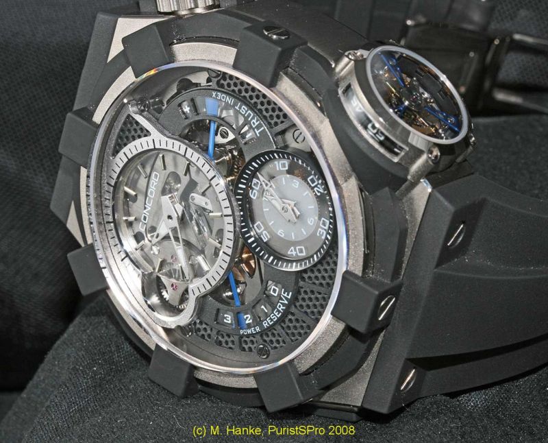 It seemed that all people attending the fair wanted to order at least a year’s supply of Concords. And in the middle I found Vincent Perriard with a huge grin on his face, apparently enjoying his company’s success. The strong and conspicuous design of the C1 series immediately became very popular, and so Concord was facing the problem of having bags full or orders, but no watches to deliver. It lasted until November 2007, when the dealers finally received the watches. While it is nice to have demand outweighing supply, this can also be a danger, especially for a newcomer on the market; too easily the initial enthusiasm can cool down, if it is not fed with the real product.