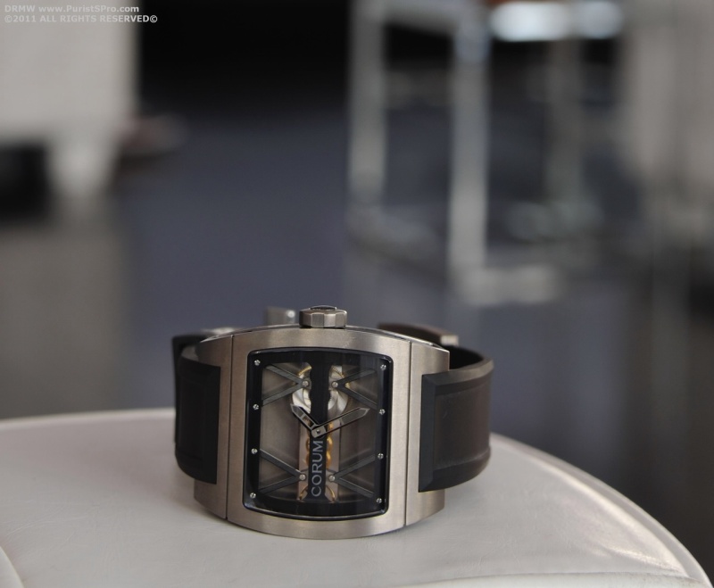 CORUM www.PuristSPro.com San Diego, California USA The moment that we have been waiting for, the watches! CORUM presented us with 3 of their standout pieces for 2011. Two from the Admiral's Cup line and Two (and very cool) Golden Bridge collection. On the right is a piece for the ladies, a Miss Golden Bridge manual wind in 18kt White Gold case. But there's something very special about this particular Golden Bridge pictured on the left! The CORUM Tourbillon GMT Seafender 47 and a magnific