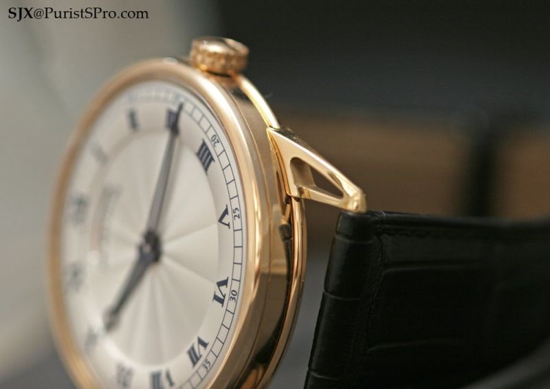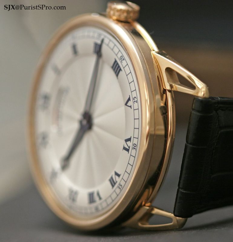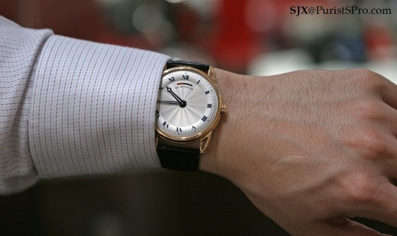 The De Bethune DB25 Classique was first shown at Basel last year, but has since undergone several tweaks resulting in the prototype you see here. One of the most obvious changes was to the power reserve: previously it was a disc indicator that was difficult to comprehend; it is now a much more intuitive linear display which leaves the dial much cleaner looking as well.