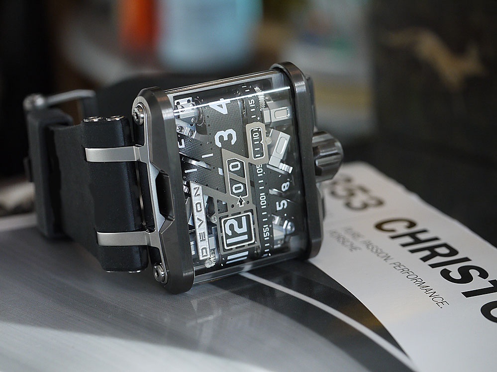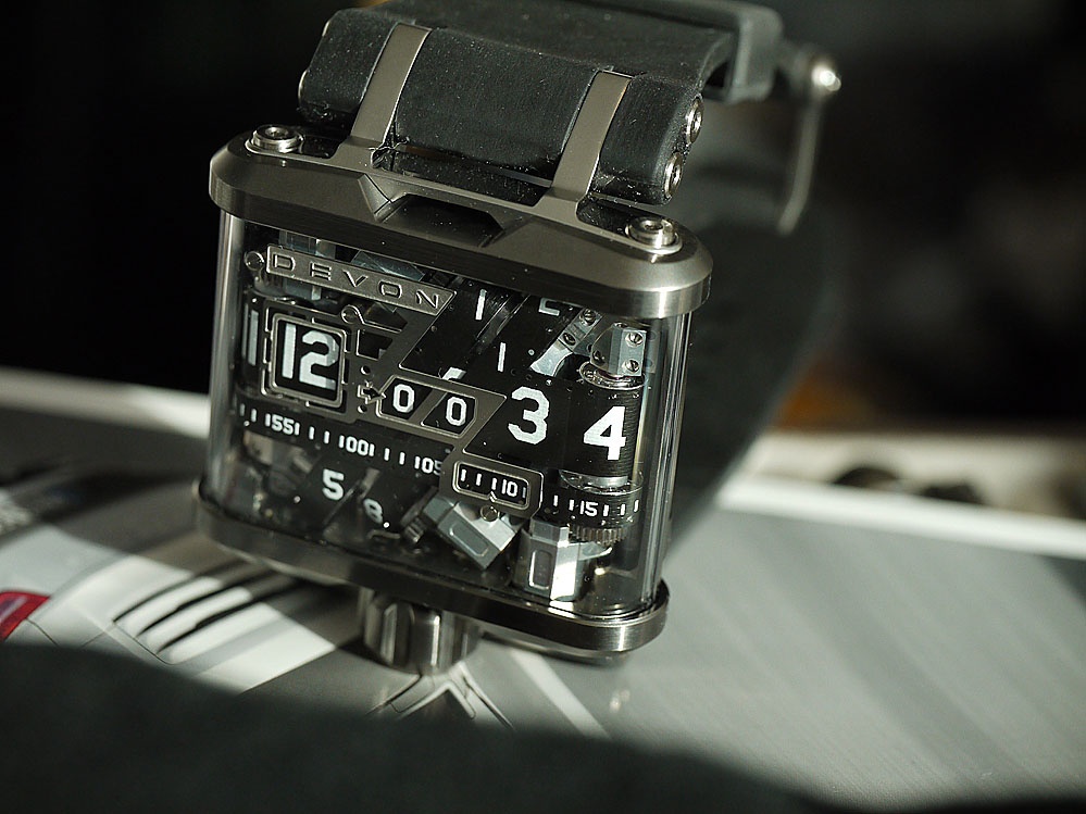 I found it well... different from all the watches I saw before. Then I put it on my wrist and the charm disappeared. I found it too bulky, too massive and sadly for this reason I didn't enjoy the time display. Anyway, I have to confess by Devon created a watch of impact with this one. Thanks for your post Bernard. Fx