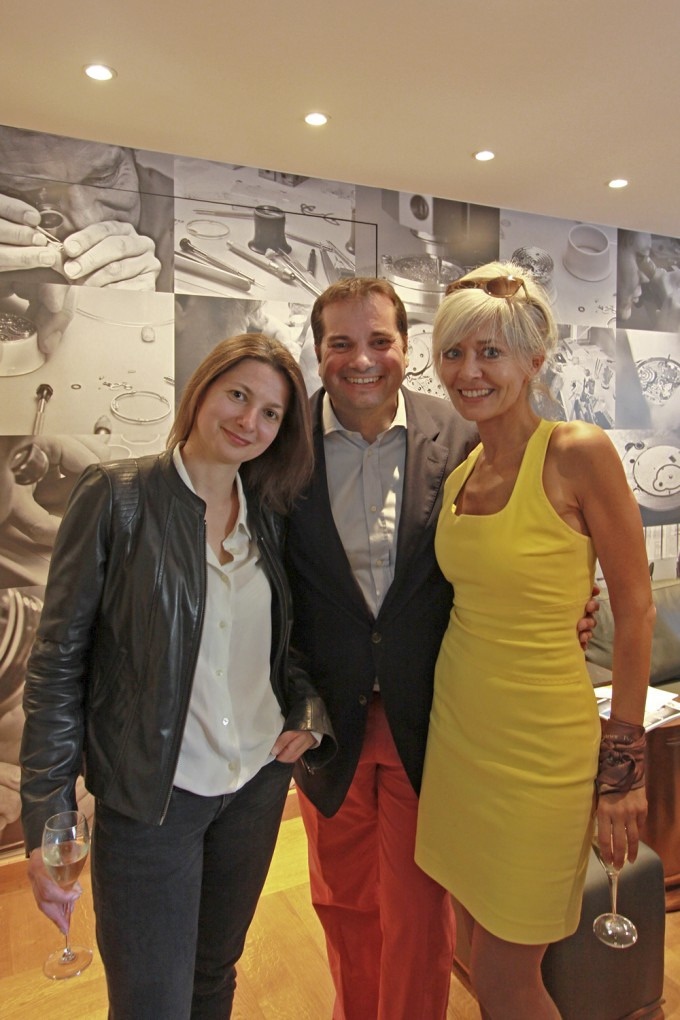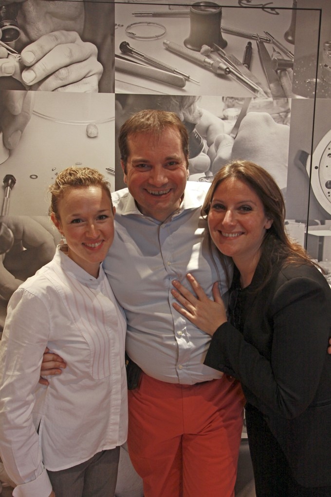 Jean Alesi between Laure and Maurine of the FP Journe boutique: