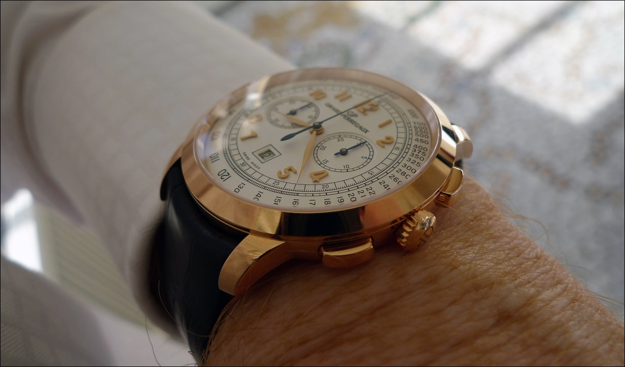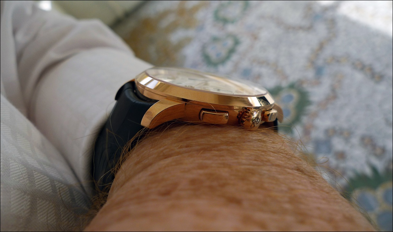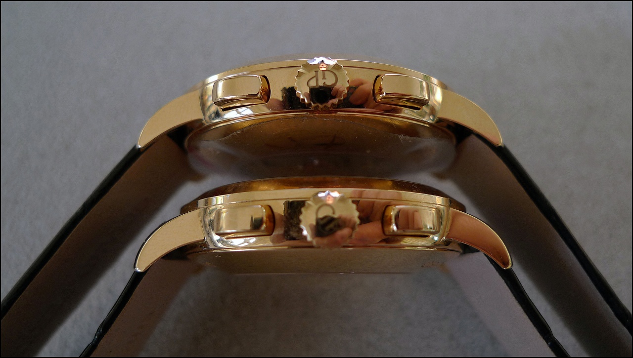 We now have two options in the 1966 Chronograph line: the original 40 x 12.05 mm (Ref. 49539) in RG and WG (available with white or blue dial) which I have previously written in detail about [click here] and the 42 x 12.53 mm (Ref. 49542) introduced in April 2012 with the addition of a date display at 6 o’clock and some design changes to the dial.