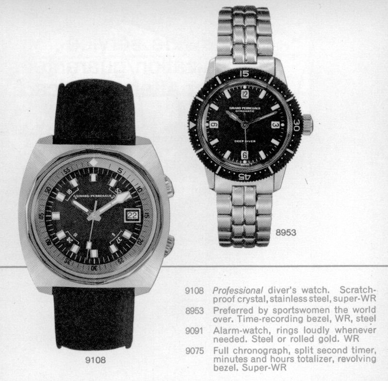 This message has been edited by blomman on 2014-07-03 00:14:12The Girard-Perregaux Deep Divers, specifically the 9076 reference, represents a significant entry in the brand's history of robust sports watches. These models were part of a broader trend in the mid-20th century where watch manufacturers developed timepieces capable of withstanding demanding aquatic environments, catering to the growing interest in diving and outdoor activities. The 9076 series is recognized for its distinctive case designs and functional aesthetics, characteristic of its era.
