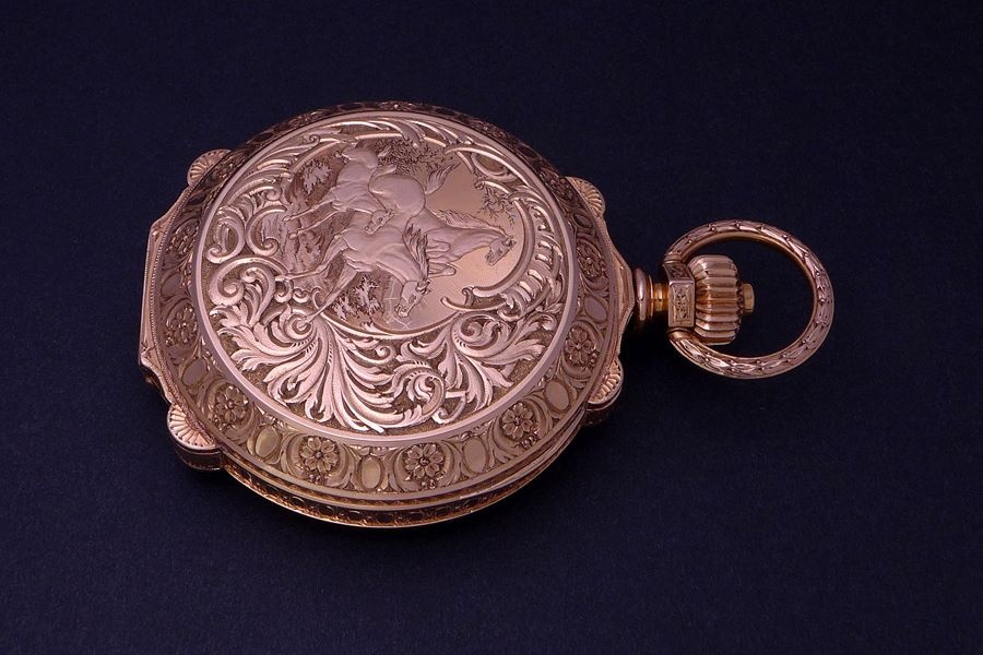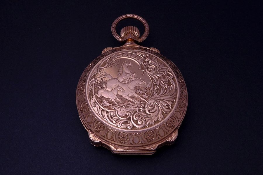 The motif with the running horses is just stunning and the decoration all around the outside of the case is of the highest craftsmanship!