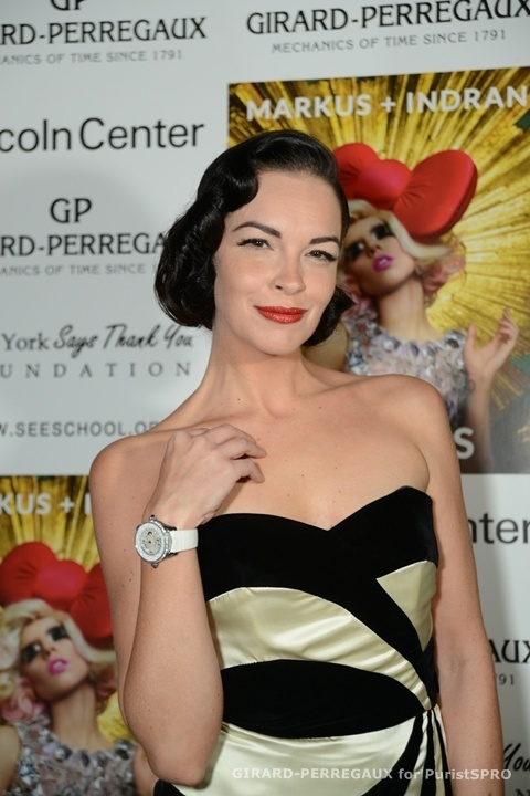 New York, NY (December 12, 2012)- Iconic luxury Swiss watch brand, Girard-Perregaux, partnered up with renowned photographers, MARKUS + INDRANI for the launch event of the ICONS Exhibition & Book last night at the newly renovated Alice Tully Hall at Lincoln Center for the Performing Arts. The event celebrated the photography duo’s 18-year career and the international release of their first book ICONS as well as Girard-Perregaux’s continued support of the arts, whom recently announced a partnership with the Academy Museum of Motion Pictures.Guests including Fern Mallis, David Evangelista, Tammy Blanchard (who was seen wearing a Girard-Perregaux WW.TC watch) and others admired the latest Girard-Perregaux timepieces while enjoying Markus and Indrani’s celebrated work, which featured a 30-piece exhibition of their most iconic prints of Lady Gaga, Beyonce, Jay-Z, Kanye West, Jennifer Lopez, Britney Spears and more.“We are very happy to be here at Lincoln Center”, said Girard-Perregaux U.S. president Michael Margolis. “The beauty in Markus and Indrani’s work is outstanding and a great companion to our timepieces”.