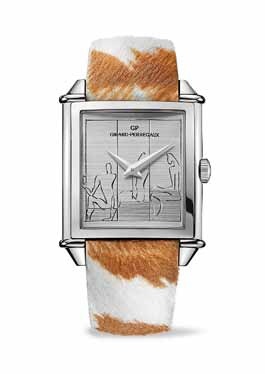 Girard-Perregaux's craftsmen pay tribute to an early Le Corbusier work by faithfully reproducing it in a bas-relief of mother-of-pearl — a nod to both the piece itself and to Le Corbusier's beginnings as a sculptor and engraver.
