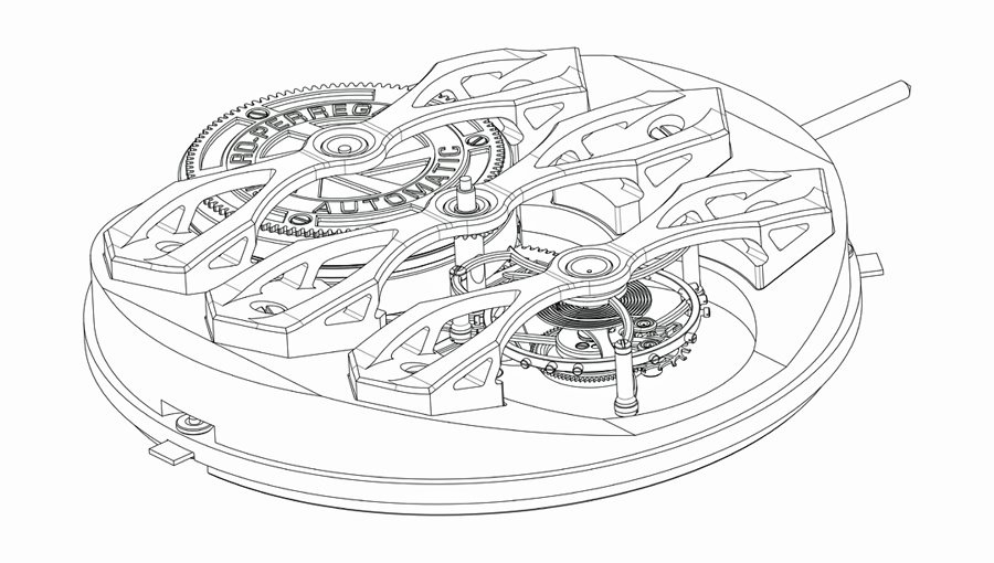 providing the automatic movement with force (21,600 vph / 3 hz, 72 hours power reserve).