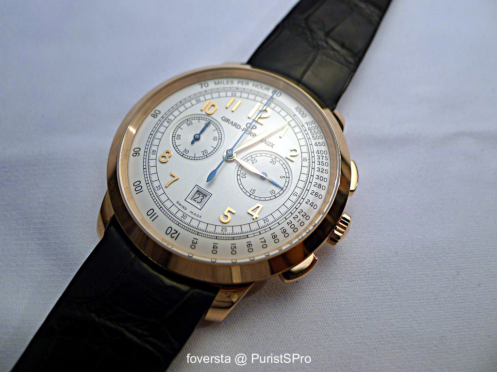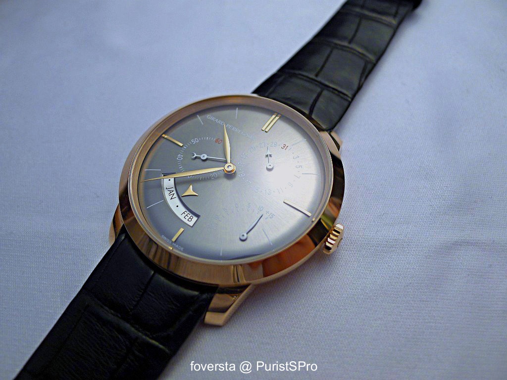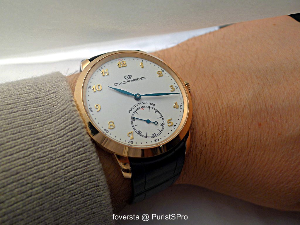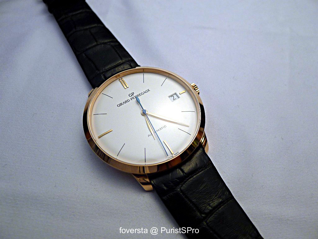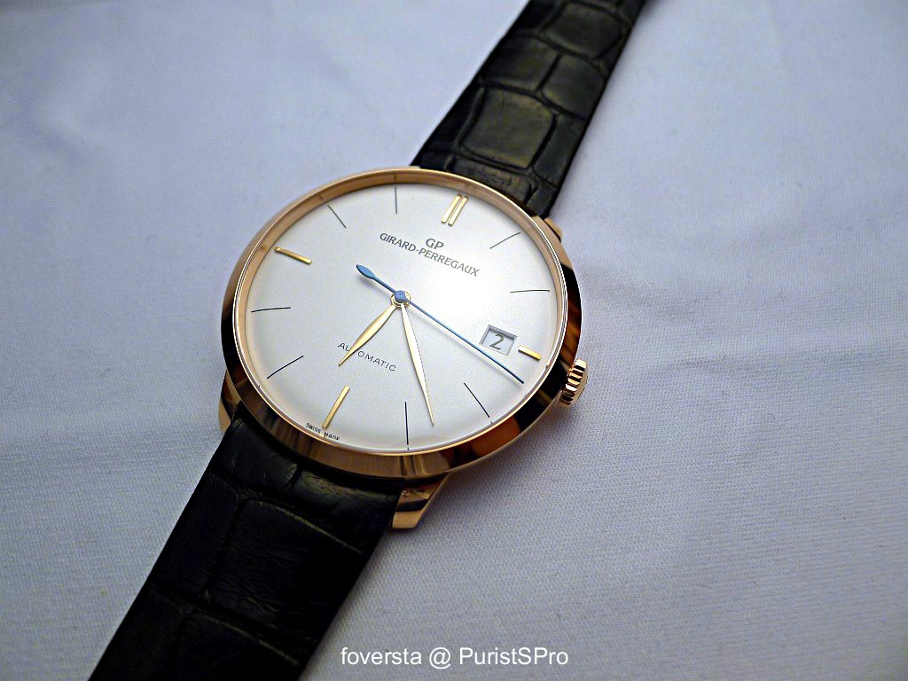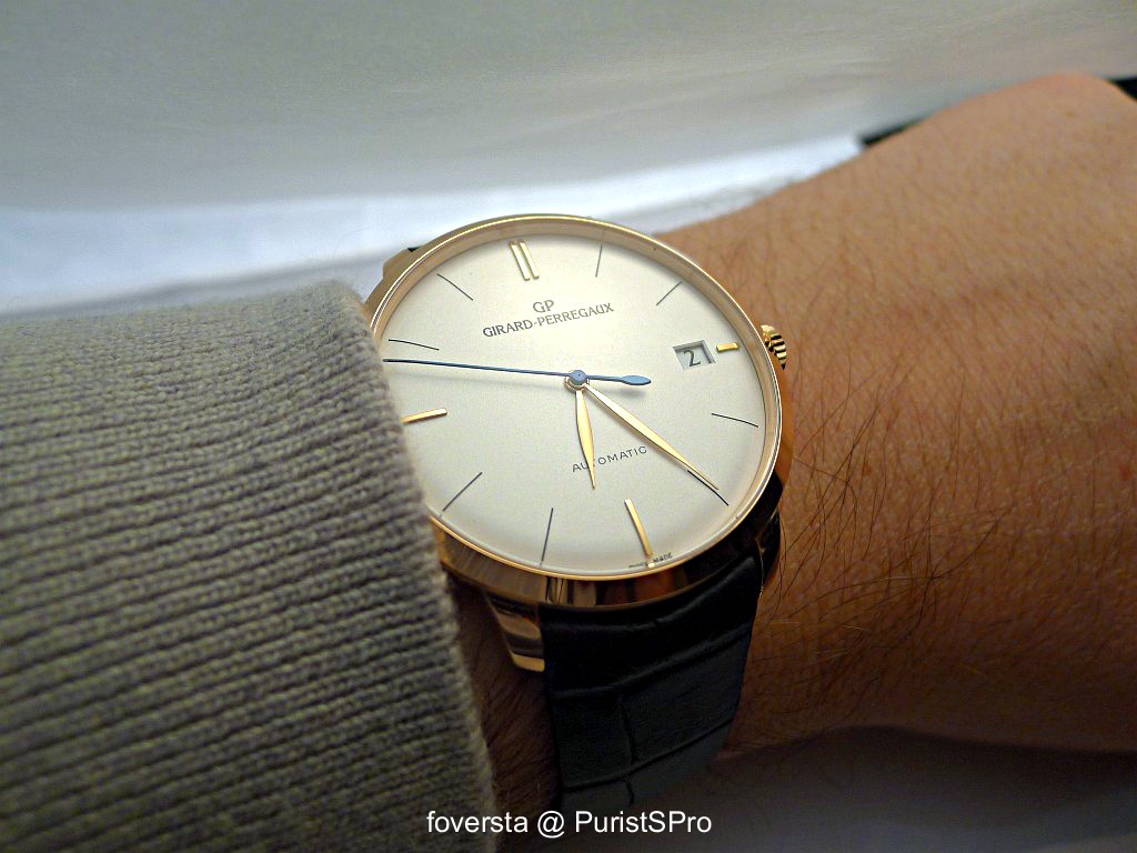 About the 1966 chronograph, me too I prefer it without the date. For the time being, I mainly expect from GP an integrated movement, handwind or automatic... I feel to live the same story than with another great Manufacture, AP. Of course, the design of the 1966 chronograph would make the handwind movement very logical. About the Vintage 1945, I was a bit worried by the thickness but absolutely not by the size. Maybe the curved design obliged GP to make it thicker than expected but it was ok for