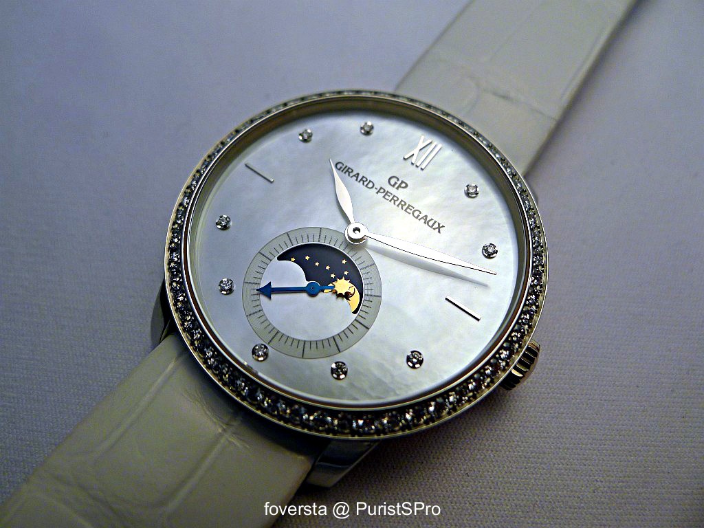 The harmony between the moonphases display, the MOP dial and the set bezel makes the watch very attractive. My only concern is about brand name on the dial: I would have prefered it to see it smaller. Anyway, this ladies' watch was also a great achievement by the GP Manufacture.