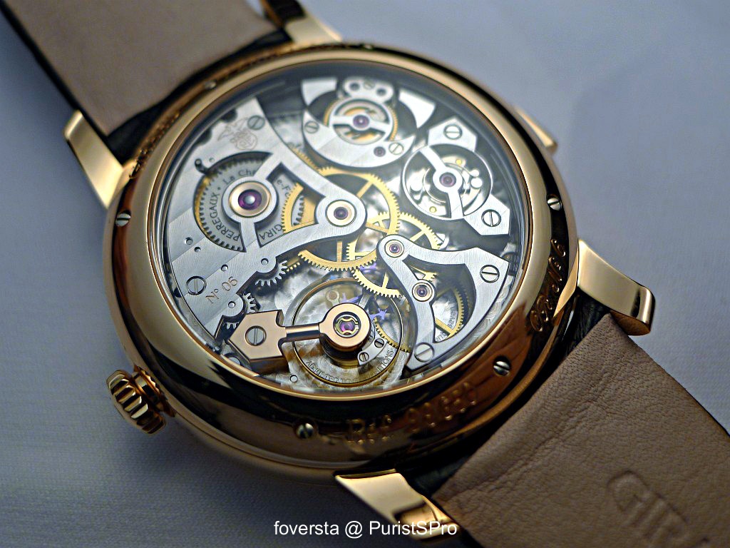 I was seduced by this watch thanks to its sound purety and the contrast between the quiet dial side and the luxurious and gorgeous movement. One of the top watches of the 2012 SIHH.
