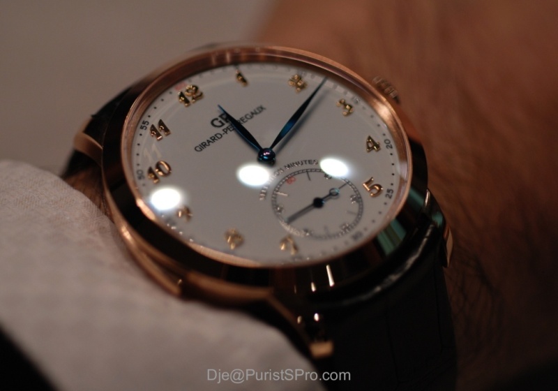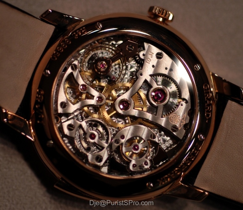 What I can already tell is that the sound produced by this calibre was very satisfying. I've listened fantastic wrist minute repeaters by Patek Philippe, Vacheron Constantin or Jaeger-LeCoultre and some far less tempting by a few others. I can tell that this Girard-Perregaux seemed to be closer to the good ones than to the others.