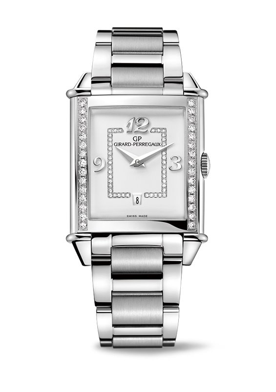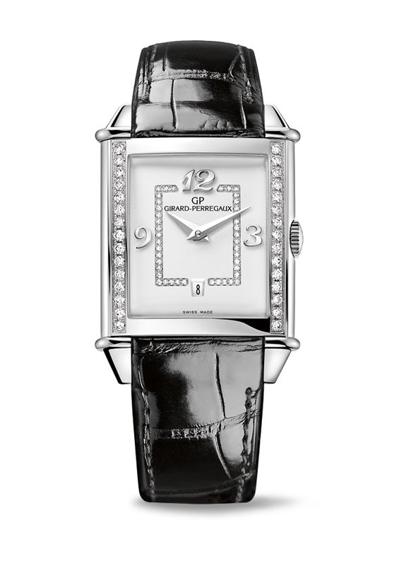 Vintage 1945 Lady, Reference: 25860D11A1A1 The Girard-Perregaux Vintage 1945 Lady is enhanced by a new dial decorated with a row of white diamonds and elegant Arabic numerals. This new and glamorously showcases the clean and precise style of an iconic watch collection. Inspired by Art Deco style, th