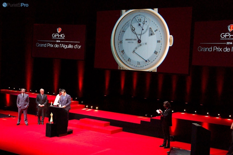 "AIGUILLE D'OR" GRAND PRIX Breguet Classique Chronométrie LADIES' WATCH PRIZE Blancpain Women Off-centred Hour LADIES' HIGH-MECH WATCH PRIZE Christophe Claret Margot MEN'S WATCH PRIZE Urban Jürgensen & Sonner Central Second CHRONOGRAPH WATCH PRIZE De Bethune DB29 Maxichrono Tourbillon TOURBILLON WATCH PRIZE Grönefeld Parallax Tourbillon CALENDAR WATCH PRIZE A. Lange & Söhne Richard Lange Perpetual Calendar "Terraluna" STRIKING WATCH PRIZE Hublot Classic Fusion Cathedral Tourbillon Minute