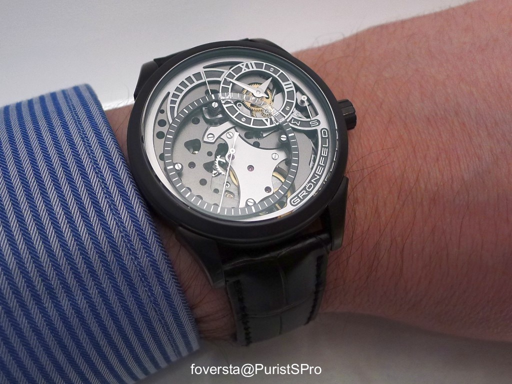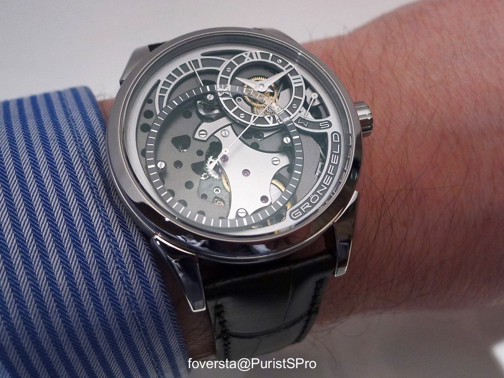 I may add in response to your "Cons":: << the case and lugs size do not fit any wrist >> just wear it a few weeks, even asleep at night, and the strap will eventually become pliant, even for my relatively small wrist. Strap it on firmly. The inside of my Nocturne appears to be rubber-coated and is therefore stiff.. << decoration style of the bridges different and more adapted to the context of the One Hertz Techniek would have been a bonus >> Your very own thoughts, Fx! A
