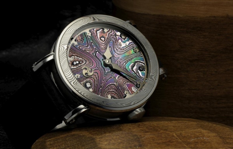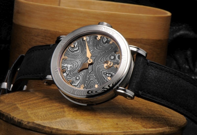 · Dial: Hand-forged Damascus steel in Johan Gustafsson's Wildflower pattern