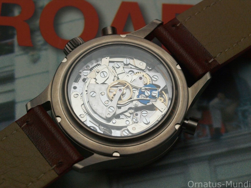 On the flip side one can admire the calibre A08MR-MONO, clearly based upon the Valjoux 7750 family of mainstay chronograph movements.