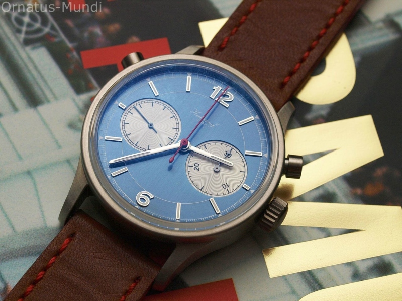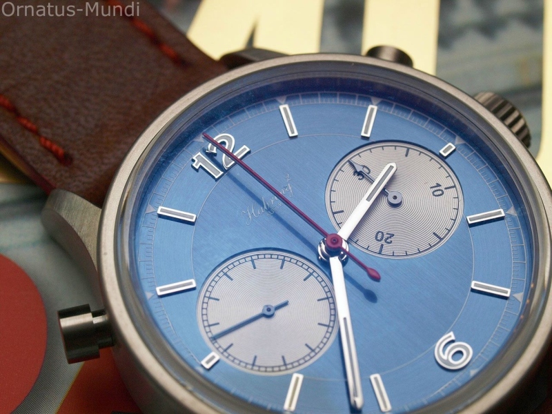 Maria Kristina and Richard invested a lot of thought and time into the design of the watch. All indications are perfectly visible, and time and chronograph functions have distinct formal features which not only comprise the hands but also the dial design (note the permanent seconds (left) and the minute counter (right)):