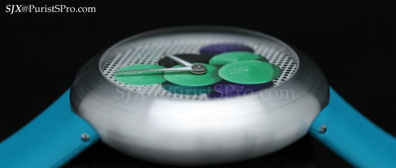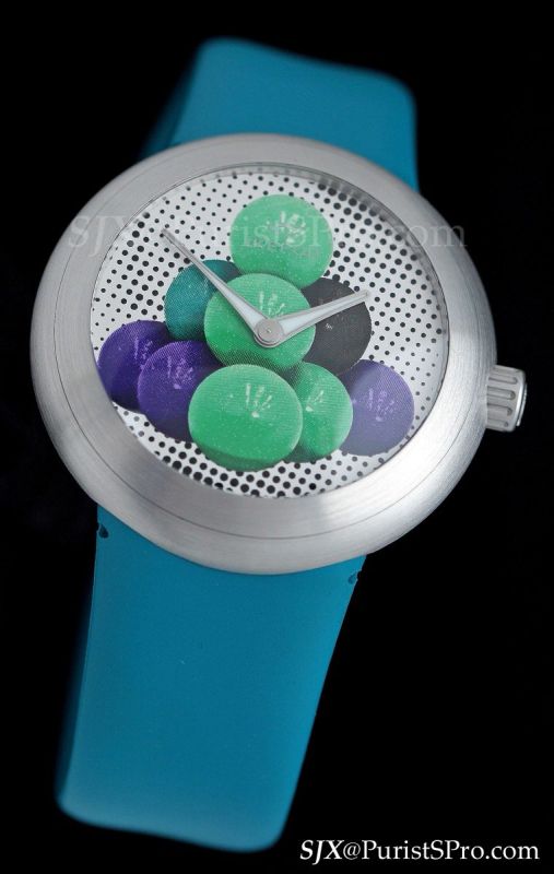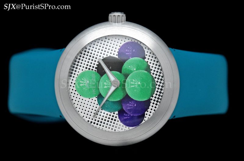 People speak of highfalutin “art” in watchmaking and often cite Philippe Dufour, Vianney Halter or Patek Philippe et al as examples of watchmaking art; Jeff Koons throws that definition out the window. What this watch has in spades is the kind of abstract design concept that has made Mr Koons a millionaire many times over. Being a philistine, I do not dare to try and interpret the design or the mysterious multiple orbs on the dial (are those palm prints?).