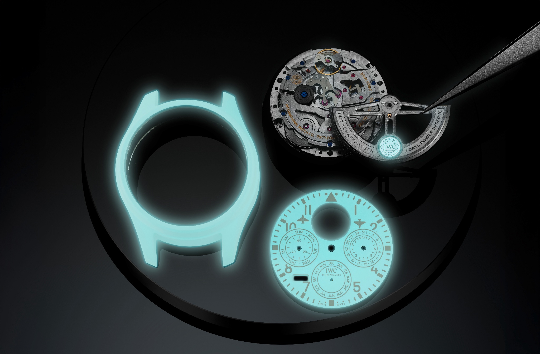 Ceramics exemplify the comprehensive expertise in advanced materials that IWC Schaffhausen has built up over the past four decades. Since pioneering this hard, scratch-resistant material in 1986, the Swiss luxury watch manufacturer has continuously enhanced its expertise in this field. Significant developments have included watch cases crafted from brown silicon nitride, black boron carbide, or a ceramic matrix composite (CMC). Last year, IWC introduced its proprietary luminous ceramic technology, Ceralume®, and presented the first concept watch. Now, this groundbreaking material innovation, combined with one of IWC’s signature complications, makes its official debut in the Pilot’s Watches collection.