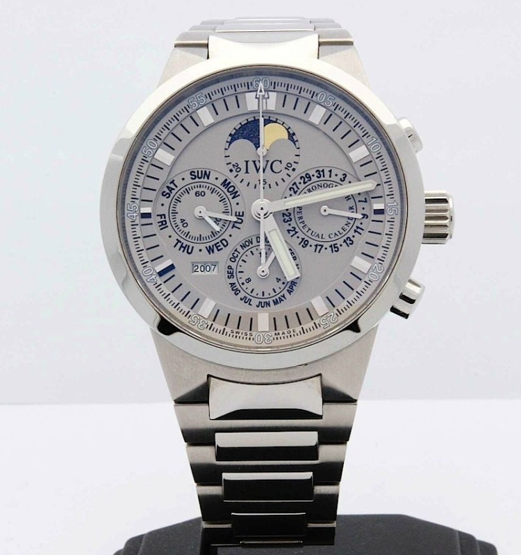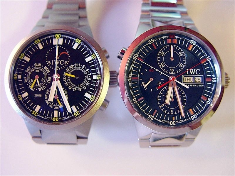 In the Fall of 1997, IWC introduced a new model line, called “GST”, which was an acronym for “gold, steel and titanium”. These models were shown at the Basel Fair in March 1998, and first in the 1998-9 catalog... One magazine, WatchTime, reports that IWC’s changes to the base movement were such that “you could almost describe it as a total revision….Nearly all critical components along the path from the escapement to the mainspring are removed from the movement and replaced with corresponding components from IWC’s own manufacture.”