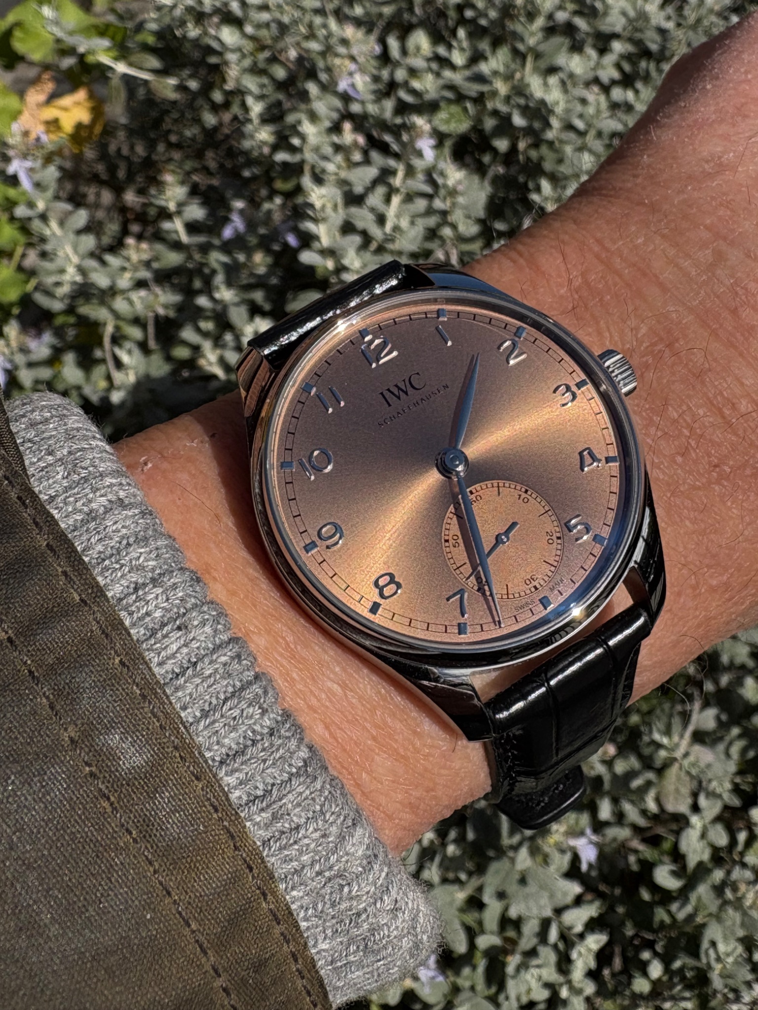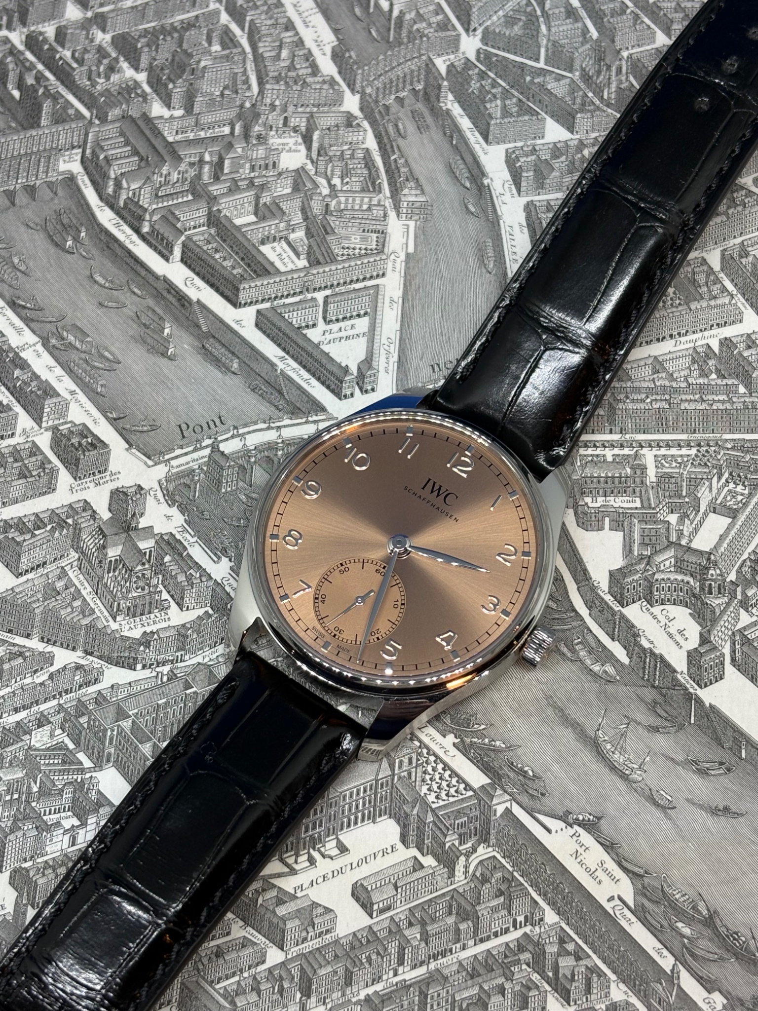... to find an affordable watch with this dial color. That was why I was so excited with this particular version of the Portuguieser which is not cheap but a fair price for this quality of watch I feel. I wish you´ll find your salmon dial watch soon. Best cordial regards, Abel