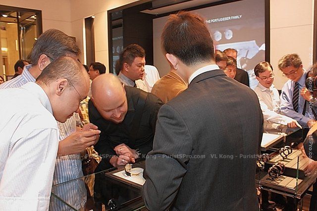 Mr Goris Verburg, General Manager of IWC South East Asia (with suit) having a discussion with guests ...