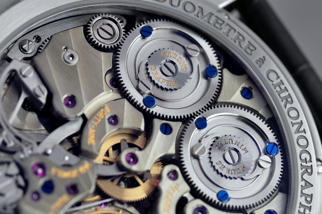 Of course, one of the highlights of the watch is the dual-wing 380 caliber with “foudroyante” seconds hand.