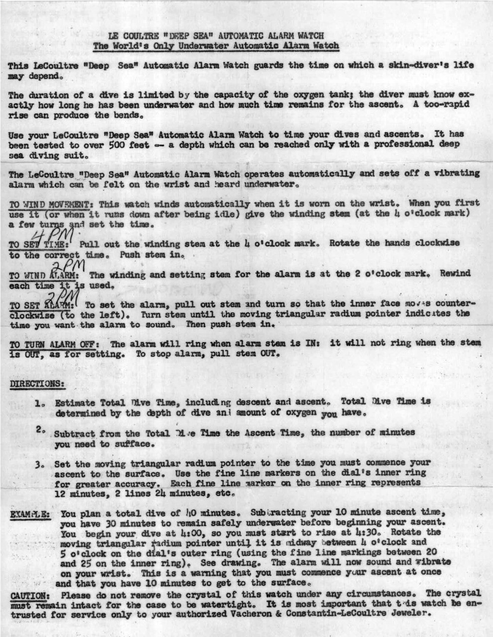 A bit later ( 1955 / 56 ) came the Omega Seamaster, and, in 1959, the Lecoultre ( as it was first made for the US Market, where the trend of Diving watches was quite important ) Deep Sea Alarm.